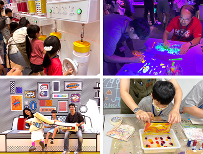 中午用餐後,眾人驅車前往龍潭的雄獅文具想像力製造所。在導覽員帶領下,首先進入想像力製造區,透過互動認識顏料三原色,並親自操作灌墨機,製作專屬的彩色筆;走進夜光隧道,黑暗中閃耀的螢光畫與光影裝置營造出奇幻氛圍,讓人宛如置身夢境。於特展區,見習生與家長們更手持螢光筆,在白紙上繪製專屬的螢光畫作。接著來到創意體驗區,大家盡情在白牆與雕塑上揮灑創意,體驗隨處作畫的暢快樂趣,在創意日常區的童趣場景中合影,留下溫馨美好的回憶。本次DIY活動時段是進行筆袋創意設計,運用海洋生物輪廓貼紙的留白效果,搭配浮水畫的流動拉花與泡泡技法,創作出專屬的海底世界。眾人不僅學習了色彩與藝術的原理,也在創作過程中培養了動手實作與自我表達的能力,為這趟融合科技、歷史與美感的探索之旅劃下繽紛而充實的句點。