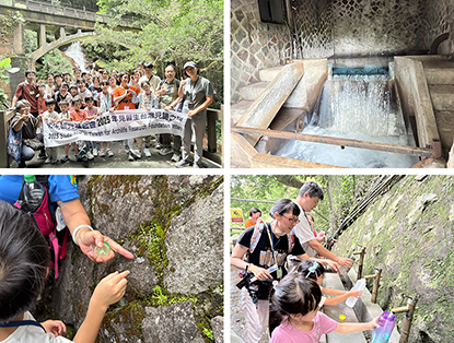 2025年8月份見識之旅縮影 2025年8月3日由呂明澐小姐帶領27位見習生及其家長們,至北投進行陽明山藍寶石泉秘境暨北投文史之旅。首站來到陽明山,在導覽員的引領下,眾人沿著天母古道緩步前行。途中,導覽員拿出了幾顆小磁鐵,邀請大家試著放在一旁的岩壁上,見習生們依言嘗試後,驚喜發現磁鐵竟能吸附其上,原來是此處由大屯火山群產生的安山岩具含鐵礦物,故可和磁鐵相吸,導覽員也進一步說明地質作用產生安山岩質地緻密的特性,亦構成草山水道系統的天然優勢——因雨水滲入地層後,經過砂石層層過濾再從岩縫噴湧而出,水質潔淨且礦物質含量適當,無須經過特殊處理便可直接飲用。途經兩百多道階梯後,眾人終於抵達草山水道第三水源所在的安山岩石屋「湧泉台」,導覽員解釋是因湧泉台的安山岩材質含有紫蘇角閃石與輝石角閃石,在光線折射下,才使泉水透出猶如藍寶石般的瑰麗色彩。隨後,大家紛紛取出自備的水瓶,到一旁的水龍頭裝盛泉水,迫不及待地品嚐地底孕育出的清甜滋味,並與隨身攜帶的開水進行比較,細細感受其中口感的差異。藍寶石泉在湧泉台中熠熠生輝,而透過導覽解說與實際品味,眾人不僅欣賞到這處百年水源的澄澈之美,更深刻體會它背後所承載的歷史與故事。For the study tour of August 3, 2025, Ms. Lu Ming-yun led 27 ARF interns and their parents on a trip to explore Yangmingshan's Sapphire Spring and Beitou's cultural history. Along Tianmu Historic Trail in Yangmingshan, the tour guide offered everyone some magnets and the interns were surprised those magnets could stick to the rock wall. Everyone learned that andesite rock formed by Datun Volcano Group contains iron, which attracts magnet. High density of andesite rock gives Caoshan Water System its natural advantage, allowing rainwater to filter through layers of sand and rock. Water gushing out from gaps in the rock is pristine and has mineral content for drinking without special treatment. After walking down more than 200 steps, everyone finally arrived at Yongquan Terrace, which is the third water source for Caoshan Water System. Containing hypersthene and pyroxenite, the spring water gleams blue like sapphire in the sunlight. Everyone eagerly took out their water bottles to fill them with spring water from a tap nearby. Through the tour guide's explanation and actual tasting, everyone learned to appreciate the pristine beauty of the century-old water, and to understand the history and story behind it. 中午時分,眾人前往草山行館用餐。草山行館建於日治時期,最初是台灣糖業株式會社的招待所,後來為迎接日本皇太子而修建的行館;國民政府遷台後,蔣中正總統曾將其作為臨時總統官邸使用,並曾在此接待包括麥克阿瑟將軍在內的多位外國政要。雖歷經時代更迭,館內外仍保留濃厚的日式風貌。如今,草山行館已由台北市政府整修為藝文沙龍,常舉辦展覽並設有餐廳,成為兼具歷史與文化的新地標。此行大家不僅在此享用午餐,也在導覽員的帶領下參觀館內陳設,聆聽文物故事,進一步理解草山行館在今日的文化價值。Everyone proceeded to Grass Mountain Chateau for lunch around noon. Built during the Japanese Occupation, it was originally Taiwan Sugar Corporation's private club and was later used to formally welcome Japan's crown prince. When the KMT government relocated to Taiwan, President Chiang Kai-shek once used it as a temporary presidential office and received many foreign dignitaries, including General MacArthur. Despite the changing times, the building has retained its Japanese-style appearance. Today, it serves as Taipei City Government's art venue. It frequently hosts exhibitions and has a restaurant, making it a new landmark of history and culture. Everyone viewed exhibits and listened to stories about the relics, further understanding its cultural value in modern day. 下午前往富含歷史氛圍的北投文物館。該館在日治時期原是當時最豪華的溫泉旅館之一,一晚住宿需六塊錢,而彼時公務員的月薪僅十八塊,可見其高貴與不凡。進入館內後,導覽員分組帶領大家參觀,循序引領探索館中各處空間,詳述該館的歷史與建築特色,包括典雅的「書院造」、充滿懷舊風情的浴池,以及供文人雅士聚會品茗的茶室等。館內的木造結構皆採傳統「無釘工法」,僅以精巧榫接將木材牢牢扣合,現場更提供木製道具,讓大家親自體驗拼接過程,兩塊木頭在無一根釘子的情況下嚴絲合縫,令人嘖嘖稱奇。至此,本日活動已近尾聲,大家一起合照留念後搭車返程,這次的參訪讓見習生及家長們從陽明山的火山地質條件,貫串由日治溫泉到戰後北投的文史特色,並期待下次見識之旅能再次體驗兼具自然與人文之美的台灣風貌。In the afternoon, everyone visited Beitou Museum, which used to be one of the most luxurious hot spring hotels during the Japanese Occupation. A night's stay costed $6 when the monthly salary of a civil servant was only $18 at that time. Historical and architectural features of the museum include the elegant "shoin-zukuri" style, a nostalgic bathing pool, and the tearoom where the literati gathered and enjoyed tea. Wooden structures within the museum are built using traditional Japanese wood joinery whereby pieces of wood are joined together without using nails. Wooden tools were provided on-site for everyone to try this woodworking technique. As the day's activities came to an end, everyone gathered for a group photo. Interns and their parents learned about Yangmingshan's volcano and geological conditions, hot spring during the Japanese Occupation and Beitou's post-war historical and cultural characteristics. It is hope