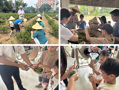 2025年9月份見識之旅縮影 2025年9月14日由呂明澐小姐帶領20位見習生及其家長們,至桃園進行機器人賽博探索暨客家茶文化體驗之旅。上午首站參訪桃園區由祥儀企業創立的機器人夢工廠,導覽員以展板解說創辦人如何以微型零件起家,精研「傳動」技術而成為知名的齒輪箱製造商,並投入研發機器人伺服馬達;由於這些零件體積偏小,因此導覽員讓見習生們觀察齒輪大模型及操作教具,來認識正齒輪、齒條、蝸輪的組構與運動方式,當把多種齒輪依設計功能整合為一種變速裝置時,即是所謂的「齒輪箱馬達」;見習生們驚見實品區的「行星式齒輪箱馬達」,竟隱身在牙科鑽針的手柄中,導覽員的解說語調彷彿伴隨高扭力轉動的鑽牙音,而「塔層式齒輪箱馬達」的耗電流與噪音較小,常見於咖啡機內部;此外,舉凡Tesla電動門把、Bosch電動工具,甚至是自動胰島素注射器,都需要更高精度與耐久度的齒輪應用,令眾人體認到不斷精進的微小齒輪確實轉動了世界。For the study tour of September 14, 2025, Ms. Lu Ming-yun led 20 ARF interns and their parents on a trip to explore competition robots and Hakka tea culture in Taoyuan. Visiting Sha Yang Ye Robot Wonderland in the morning, everyone learned how Sha Yang Ye Inc. has begun as a micro parts maker. Having refined its "transmission" technology, it is now a famous gear motor manufacturer and developer of servo motors used in robots. As the actual size of these components are quite small, the interns learned about the structure and operation of spur gear, rack and worm gear by observing a large gear model and operating teaching aids. A "gear motor" is comprised of multiple gears designed for different functions. Interns were surprised to learn that a high-torque "planetary gear motor" is used in the handle of dental drills while a "spur gear motor" is often used inside coffee machines because of its lower power consumption and noise. Furthermore, higher precision and more durable gears are used in Tesla car door handles, Bosch tools and even automatic insulin pump. It led everyone to recognize that ever-advancing micro gears truly drive the world. 中午在龍潭的臺灣客家茶文化館用餐後,眾人戴上斗笠、揹起茶簍,隨徐榮俊館長的腳步展開採茶體驗;文化館坐落於許多各有經營特色的茶園之間—有樹型整齊的機器採收茶園、獲雨林認證的連鎖企業茶園,也有專以人工採摘的小型茶園。本次徐館長特別商請新植台茶17號「白鷺」兩年餘的龍山茶園,提供大家初摘茶菁的寶貴機會,遵循「一捏、一彎、一提」原則,將茶樹上端的最嫩處「一心二葉」採下;雖然午後天氣轉涼,但在限時完成的壓力下,見習生與家長依然揮汗奮力採摘。莫約半小時後,茶簍溢滿的眾人終於回到涼爽的製茶區,聽取決定茶葉後續變化的關鍵解說,由於本次製作的是不發酵的綠茶,徐館長把大家摘取的嫩葉倒入「炒菁機」,以高溫殺菁以終止發酵,再倒出因水份散失而縮小的茶葉,分袋進行「揉捻」,這道程序旨在破壞茶葉細胞組織,使茶湯被擠壓而滲出附著葉表,館長見眾人不分年紀都使出狠勁想搓揉出多茶湯風味,便進一步介紹以馬達傳動的望月式揉捻機,模擬手工團揉動作,既省時又省力。After lunch at Taiwan Hakka Tea Culture Museum in Longtan around noon, everyone went tea harvesting with museum director Hsu Jung-chun, wearing bamboo hats and carrying tea baskets. The museum is nestled among several distinctive tea plantations, including plantations with neatly aligned tea bushes harvested by machines, Rainforest Alliance–certified chain tea plantations, and small-scale plantations that are harvested manually. Mr. Hsu especially requested permission from Longshan Tea Plantation to give everyone the opportunity to pluck the newest growth from their Taiwan Tea No.17, known as "Egret." Everyone was plucking the youngest two leaves from the top of the tea trees by "pinching, bending and lifting." Despite the afternoon turning cooler, the interns and their parents continued harvesting vigorously under the pressure of time constraints. Half an hour later, everyone returned to the tea-making area with baskets full of harvest. To make unfermented green tea, Mr. Hsu poured the tender leaves into a tea leaves fryer to heat the leaves and stop the fermentation process. Desiccated leaves were then divided into small packages to be crushed. This process breaks cell walls of tea leaves to help release aromatic compounds. Observing how everyone struggled to crush the leaves, Mr. Hsu introduced a motorized crusher which mimics manual crushing, saving time and effort. 在等待茶葉乾燥的空檔,一行人由茶文化館經理帶領參觀茶產業歷史迴廊並解說具異國風情的東、西方花茶特展區,見習生們亦透過觸摸、翻攪展場的大量乾燥茉莉花苞,模擬將茶葉與茉莉花瓣混合的窨花工藝,體驗六零年代盛極一時的外銷茉莉花茶製作現場。活動接近尾聲,大家回到製茶區進行包裝作業,原本量多到需雙手捧起的一心二葉,雖然在烘盤網片上只剩少量的乾縮灰白條狀綠茶,但眾人對日後沖泡時將綻放的清香鮮爽仍滿懷期待,並希望於下次見識之旅能再品嚐美好的台灣風味。While the tea leaves were drying, everyone toured the museum to learn about the history of the tea industry and the exhibits of Eastern and Western teas. By touching and stirring dried jasmine flower buds, the interns simulated the scenting technique used for jasmine-infused tea that was popular in the 1960s. Finally, everyone returned to the tea packaging area. Even though the harvest had become little more than grayish-white sticks of desiccated leaves on the drying tray, everyone looked forwar