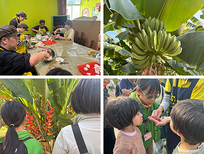 下午前往集元果觀光工廠,眾人首先進行山蕉蛋糕DIY。活動一開始即需打發雞蛋,許多年幼的見習生首次體驗將蛋黃與蛋白分離,過程中不時傳來驚呼聲;蛋殼掉入碗中、蛋黃混合情形頻傳,一度手忙腳亂,所幸在老師指導下逐漸步入正軌。之後依序加入山蕉、麵粉與砂糖拌勻,將麵糊倒入模具,撒上南瓜籽,送入烤箱靜待成果出爐。等待期間,導覽人員帶領眾人到戶外園區認識各式蕉種,品項繁多、令人目不暇給;如在泰國被稱為「合掌之手」的蛤蜊蕉、綠白交織如雲的雲彩芭蕉,以及色澤朱紅、花苞宛如蟹爪垂掛的火紅赫蕉,皆屬平日難得一見品種。導覽同時說明辨識香蕉大小要領,可由假莖粗細加以判斷;假莖越粗壯,果實通常也越碩大。最後回到室內展館,認識不同品種香蕉的特色差異與相關健康知識;互動式投影小遊戲寓教於樂,讓見習生們流連忘返。隨後取回甫出爐的山蕉蛋糕細細品嚐,在視覺與味覺交織的感受中,為當日行程畫下香甜而圓滿的句點。